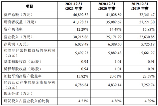财务方面,于2019年度、2020年度及2021年度,东南电子实现营业收入分别约为2.26亿元、2.52亿元、3.02亿元。公司净利润分别为5725.18万元、6389.5万元、6028.48万元人民币。