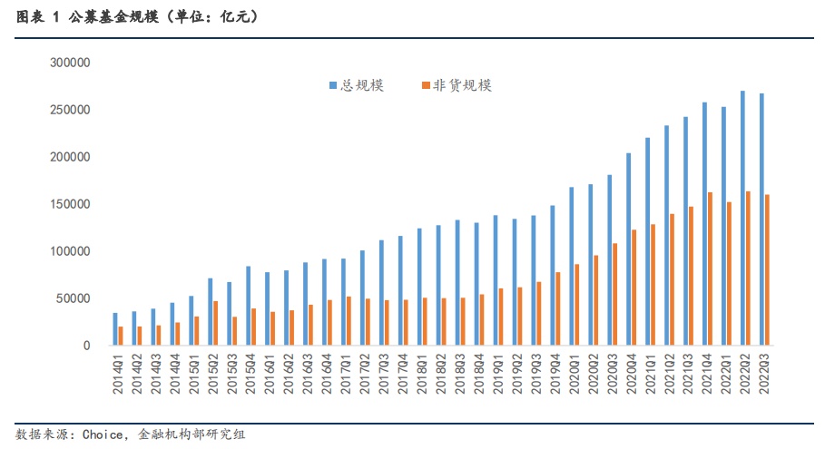智通财经APP获悉,天天基金网数据显示,截至三季度末,公募基金规模达到26.73万亿,较今年二季度环比降低约0.27万亿,主要由于非货币基金规模下降,2022年三季度非货基金规模较今年二季度下降0.34万亿,规模近16.00万亿。