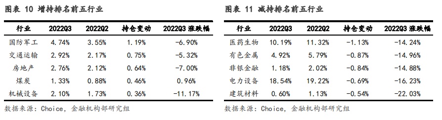 从重仓行业市值占比相比二季度来看,天天基金数据显示,国防军工、交通运输、房地产、煤炭和机械设备是获得增持最多的五个行业。其中,煤炭行业三季度涨幅0.96%。