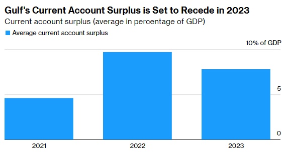 智通财经APP获悉,国际货币基金组织(IMF)预计,在2022-2026年期间,中东和中亚的能源出口国将累计获得约1万亿美元的意外之财,这对海湾阿拉伯经济体来说将是一个更长远的收获,因为它们将累积更多的石油收入。IMF预计,到2022年,海湾国家的平均经常项目盈余将接近国内生产总值(GDP)的10%,几乎是去年水平的两倍,并有望在2023年仍达到7.8%。