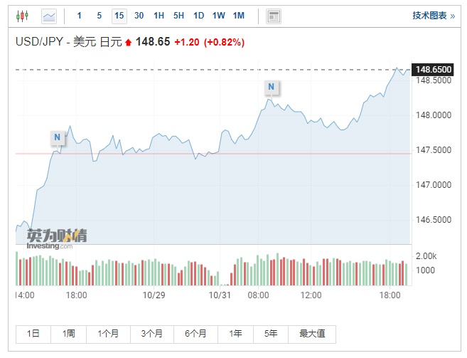 数据公布后,日元继续下跌。截至发稿,美元兑日元报148.65。