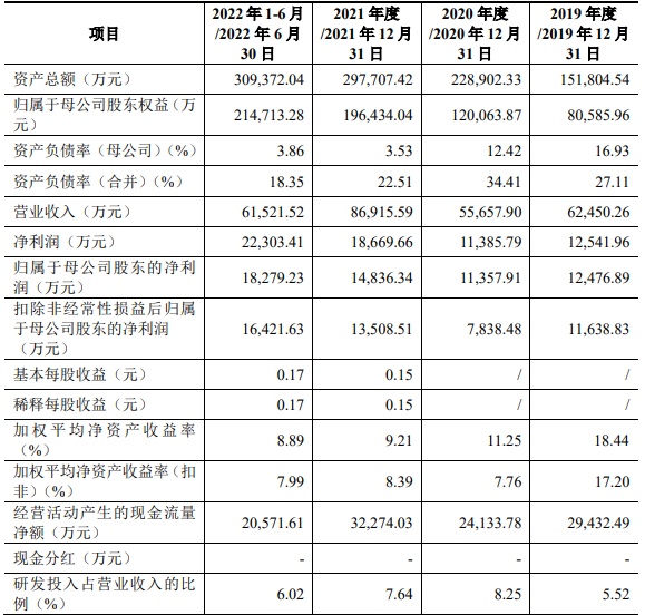 财务方面,于2019年度、2020年度、2021年度及2022年1-6月,有研硅营业收入分别约为6.25亿元、5.57亿元、8.69亿元、6.15亿元人民币。公司净利润分别约为1.25亿元、1.14亿元、1.87亿元、2.23亿元人民币,归母净利润分别约为1.25亿元、1.14亿元、1.48亿元、1.83亿元人民币。