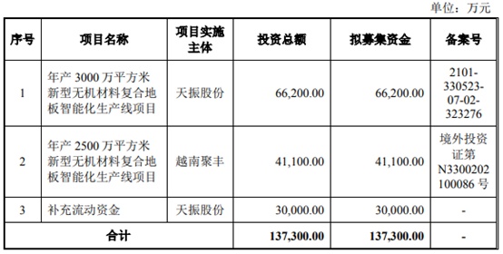 据了解,天振股份募集资金扣除发行费用后,拟用于以下列项目: