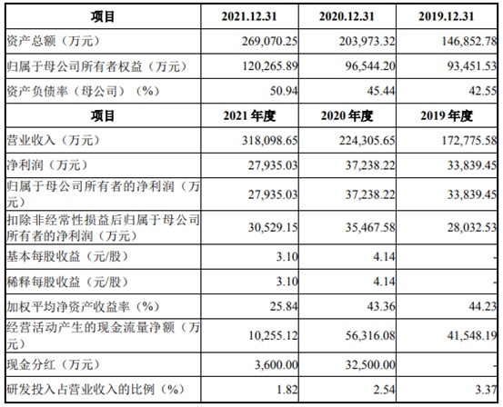财务方面,于2019年度、2020年度及2021年度,天振股份实现营业收入分别约为17.28亿元、22.43亿元、31.81亿元。公司净利润分别为3.38亿元、3.72亿元、2.79亿元人民币,归母净利润与净利润数值相同。