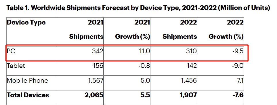 对于一些芯片公司来说,个人电脑(PC)往往是利润最集中的领域。另一研究机构Gartner估计,2022年第二季度全球PC出货量总计7200万台,同比下降近13%,为九年来最大降幅。该机构还预测2022年全球PC出货量将下降9.5%。