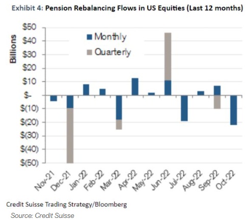 智通财经APP注意到,月底,包括养老基金在内的一些机构投资者开始对市场敞口进行定期评估,以确保满足股票和债券之间的严格配置限制。但在标准普尔500指数10月份上涨约8%的情况下,这种再平衡可能会迫使基金抛售股票。
