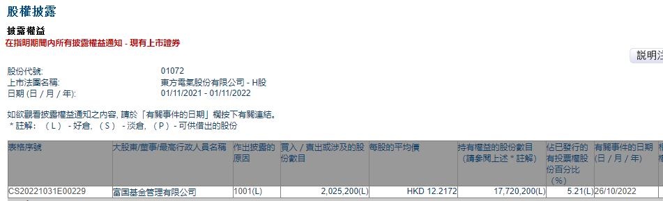 智通财经APP获悉,香港联交所最新资料显示,10月26日,富国基金增持东方电气(01072)202.52万股,每股作价12.2172港元,总金额约为2474.23万港元。增持后最新持股数目为1772.02万股,最新持股比例为5.21%。