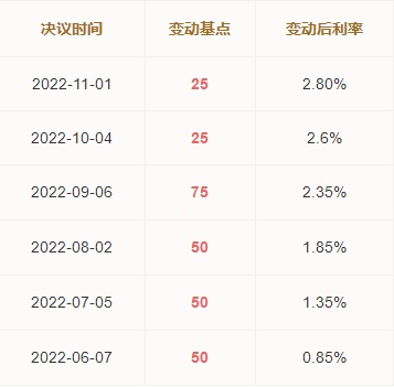 澳洲联储近期历次加息幅度