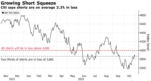 花旗策略师表示,标普500指数的“大量多头和空头头寸正在相互抵消”。三分之二的空头已在3865点水平处亏损,而所有空头将在4000点以上的水平亏损,这将增加压力,轧空可能在短期内支撑市场走高。