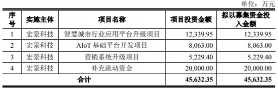 据了解,宏景科技募集资金扣除发行费用后,拟用于以下列项目: