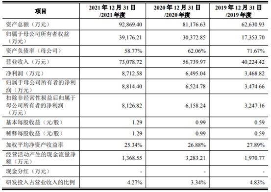 财务方面,于2019年度、2020年度及2021年度,宏景科技实现营业收入分别约为4.02亿元、5.67亿元、7.31亿元。公司净利润分别为3468.82万元、6495.04万元、8712.58万元人民币。