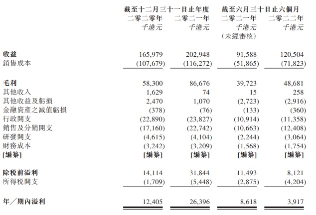 于往绩记录期间,优博控股的收益主要来自托盘及托盘相关产品的销售。截至2020年及2021年12月31日止年度以及截至2021年及2022年6月30日止6个月,公司的收益总额分别约为1.66亿港元、2.03亿港元、9158.8万港元及1.21亿港元。