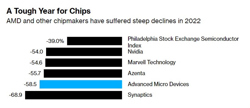 今年对于芯片行业来说是艰难的一年——AMD和其他芯片公司股价在2022年遭受重创