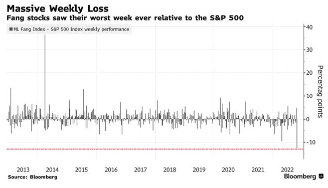 在债券收益率不断下降,美联储继续推进数十年来最激进的紧缩政策之际,大型科技股的下跌动摇了投资者的信心。由于利率上升抑制了增长,这个曾在疫情期间受到交易员欢迎的行业已成为今年表现最差的板块之一。