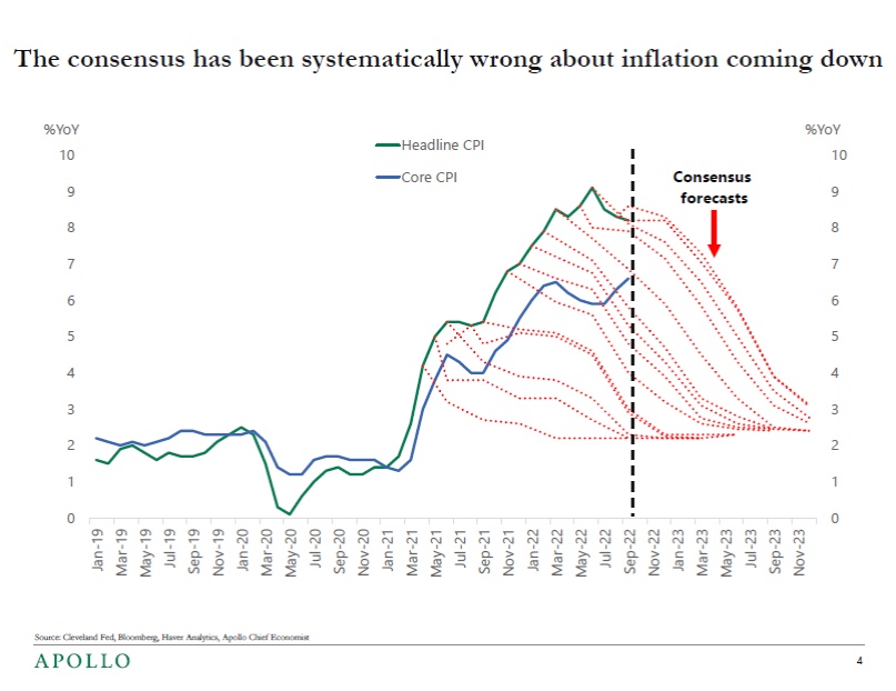 倘若通胀真的持续降至美联储设定的2%目标以下,“过度紧缩”这一负面症状将是其中之一。难道真的有人相信美联储将利率提高到4%以上会将核心通胀率从远高于6%降至2%以下吗?为什么这么认为呢?