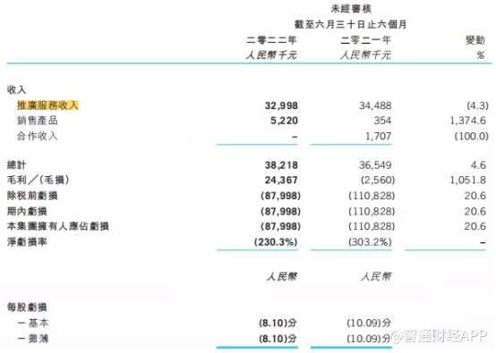 与此同时,公司营业收入并无明显增长。2022年上半年,公司取得总收入3821.8万元,同比增加4.6%。