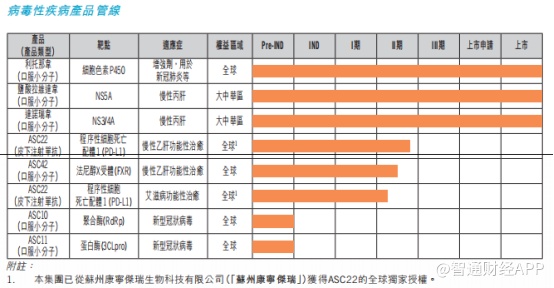 在非酒精性脂肪性肝炎(NASH)领域,口服小分子药物ASC41已进入II期临床试验;在新冠药物方面,ASC10临床试验申请已获得国家药监局批准,ASC11则已向FDA递交临床试验申请,预计2022年底前完成在健康受试者中的I期临床试验。