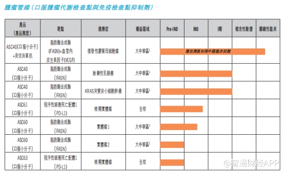 而在其他在研产品中,在肝炎和肿瘤领域,治疗非酒精性脂肪性肝炎的ASC40进展最快。今年1月,ASC40联合贝伐珠单抗治疗复发性胶质母细胞瘤的III期临床试验已经完成首例患者给药,进入关键临床的阶段。