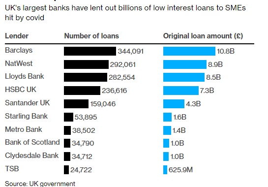2020年,各银行获政府所有的英国商业银行(British Business Bank)授权发放贷款。根据BBLS计划发放的贷款由英国政府100%担保,如果企业未能偿还,银行可以提出清算申请。