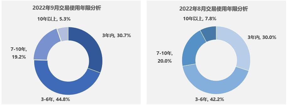 使用年限在3年内车型占比为30.5%,较去年同期增加了8.1个百分点;