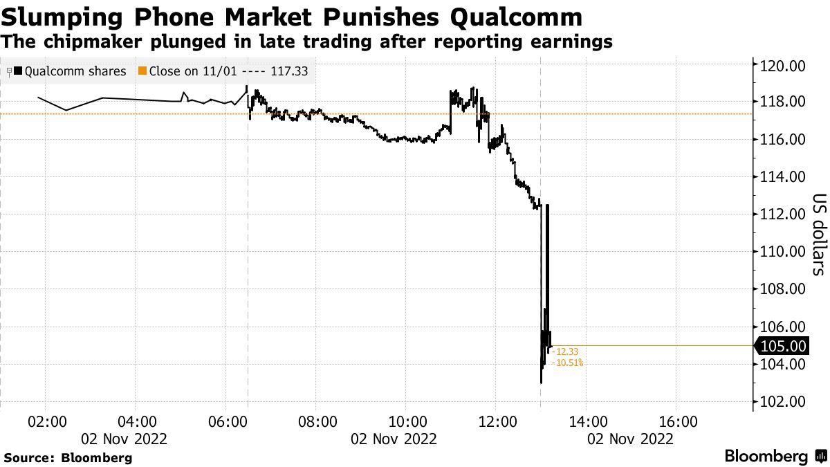 高通公布的最新财报显示,消费电子市场的衰退速度比人们担心的要快,财报公布后高通股价盘后一度暴跌超8%。即使在报告发布之前,受智能手机需求预期偏悲观带来的影响,高通股价今年已经下跌约38%。