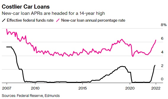 智通财经APP获悉,就在汽车制造商开始着手解决零部件短缺问题之际,美联储又设置了一个新的障碍:借贷成本大幅上升的汽车贷款。零部件短缺问题限制了汽车生产,令经销商的汽车供应量不足。