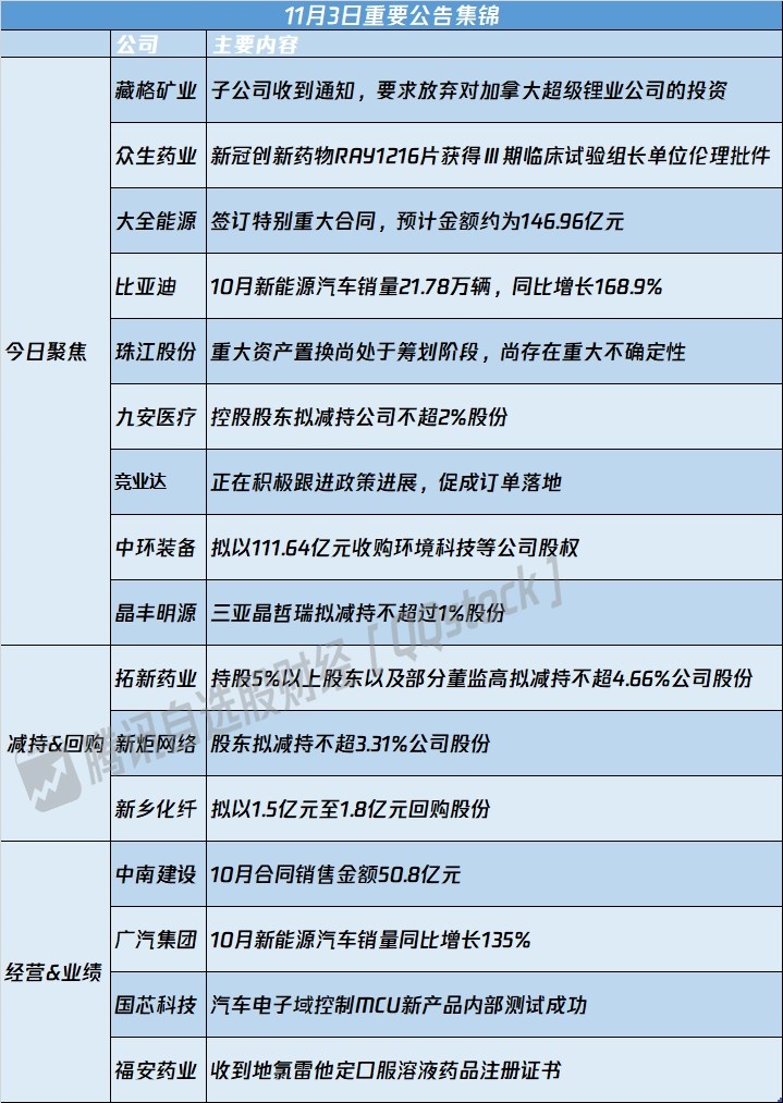 藏格矿业公告,全资子公司藏格矿业投资此前公告,以414万加元认购加拿大超级锂业公司定向增发股份2300万单位。11月3日,藏格矿业投资收到加拿大创新、科技和经济发展部的有关通知:藏格矿业投资应在通知签发之日起90日内放弃投资,包括其在投资项下的权利,并必须直接或间接停止为促进投资而进行的所有商业活动。若藏格矿业投资有意但仍无法在期限内剥离投资,可书面请求延长期限。