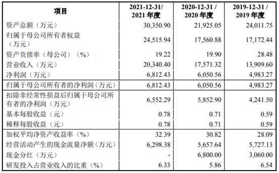 财务方面,于2019年度、2020年度及2021年度,众智科技实现营业收入分别约为1.39亿元、1.76亿元、2.03亿元。公司净利润分别为4983.27万元、6050.56万元、6812.43万元人民币,归母净利润与净利润数值相同。