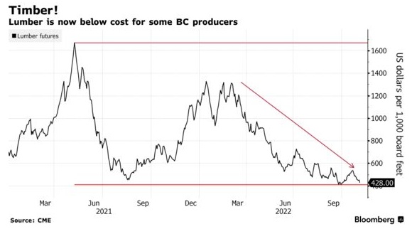 Quinn表示,“木材价格处于最低水平以下,所以卑诗省的生产商在赔钱。”“我怀疑明年会有很多锯木厂倒闭。”