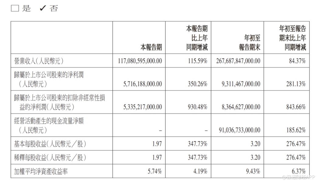 智通财经APP获悉,10月28日,比亚迪发布2022年前三季度业绩公告,报告显示,公司当期实现营业收入1170.81亿元,同比增长115.59%;归属于上市公司股东的净利润57.16亿元。