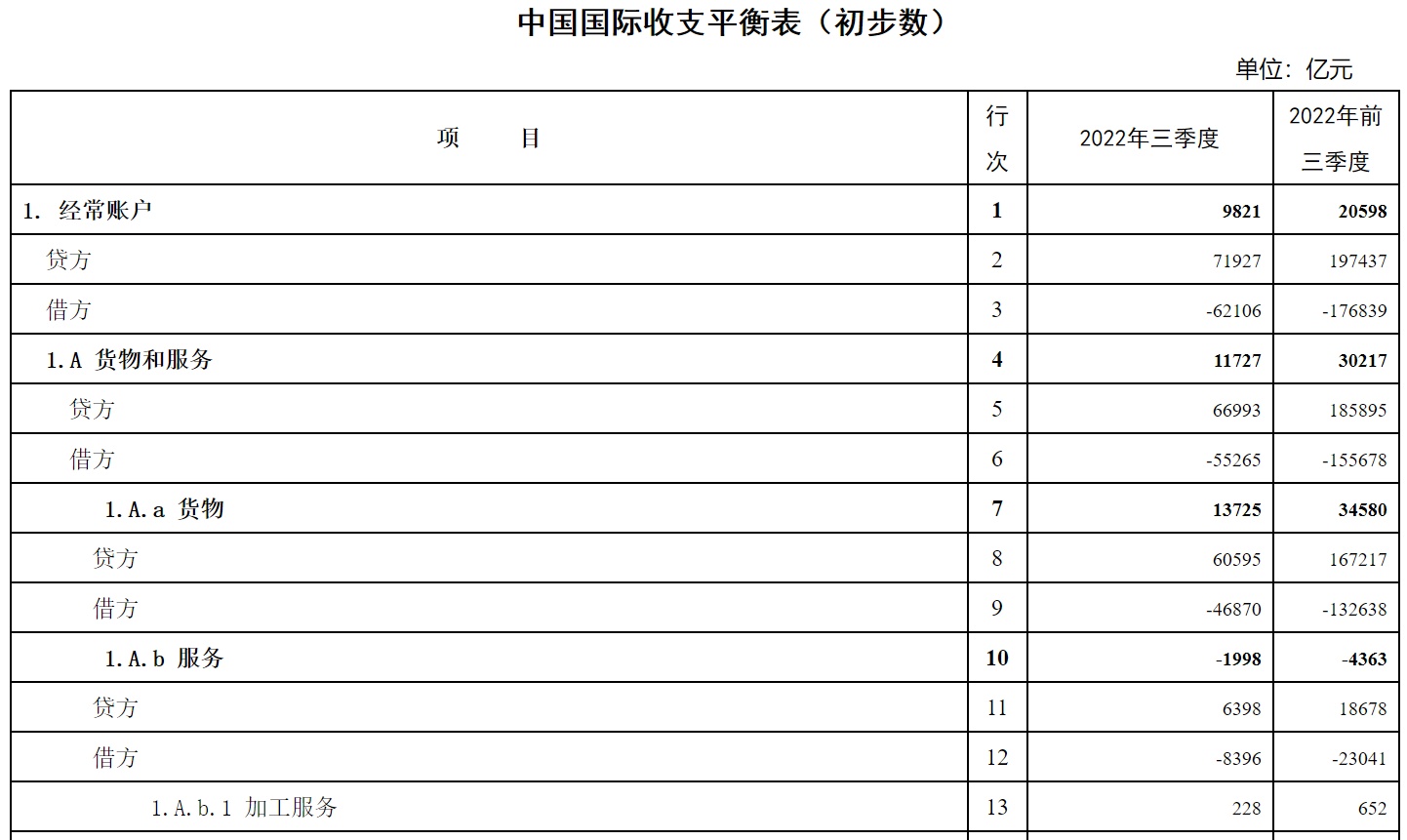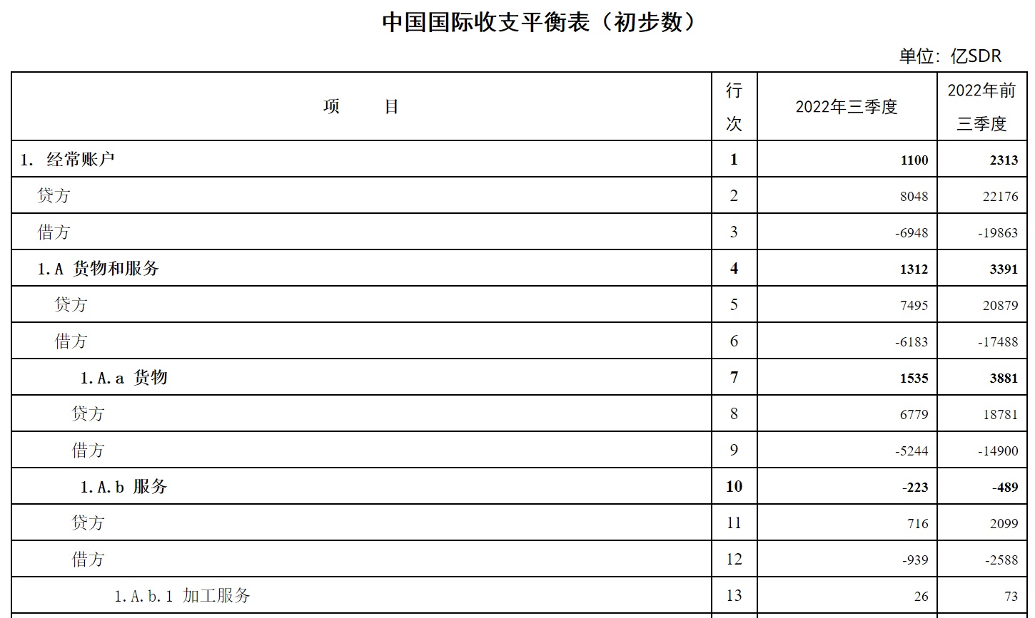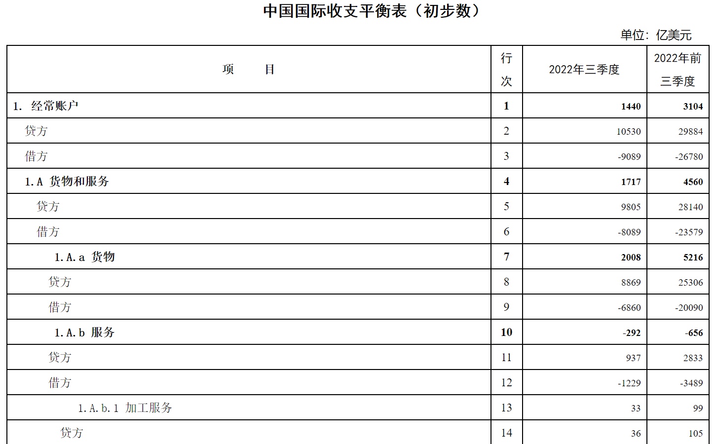 国家外汇管理局公布2022年三季度及前三季度我国国际收支平衡表初步数。
