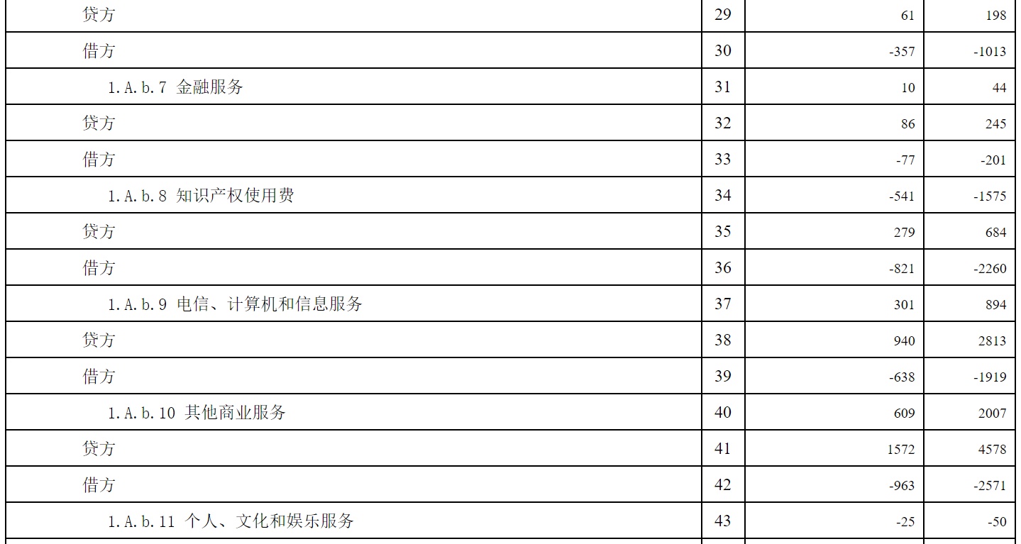 按SDR计值,2022年三季度,我国经常账户顺差1100亿SDR,其中,货物贸易顺差1535亿SDR,服务贸易逆差223亿SDR。资本和金融账户中,直接投资逆差207亿SDR,储备资产增加287亿SDR。