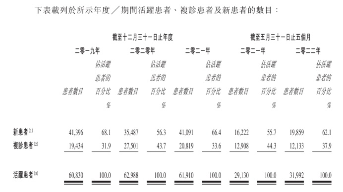 从美皓医疗过往客户群表现看,2019-2021年度及2022年前5个月,公司活跃患者群(相关财政年度至少接受一次牙科治疗的患者)分别为60830名、62988名、61910名及31992名。