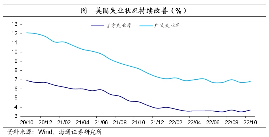 非农就业有所放缓。2022年10月美国新增非农就业26.1万人,较上一月继续回落,3个月移动平均新增就业也跌破30万人,为去年1月以来首次。