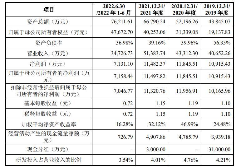 2019 年至 2021 年,公司研发投入分别为 1712.36 万元、2061.93 万元、2058.92 万元,占营业收入比例分别为 4.21%、4.76%、4.01%,公司研发投入复合增长率为 9.65%。截至招股意向书签署日,该公司的盐酸利多卡因原料药、盐酸萘甲唑啉原料药已通过国家药品监督管理局药品审评中心审评,完成备案登记。此外,公司目前在研 18 个原料药品种中已有 4 个品种提交国家药品监督管理局药品审评中心备案登记,其中 1 个品种已通过药品注册生产现场核查。