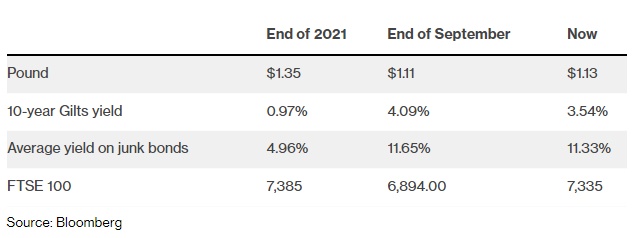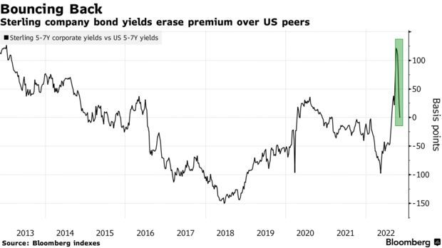 信贷市场的形势则显示出更多的缓解迹象。数据显示,中、高评级的以英镑计价的公司债券出现反弹,与等值的美元债券的息差不再存在溢价。这一息差已从10月10日达到的150个基点的峰值大幅下降,原因是苏纳克的新政府增强了投资者对英国可信度的看法。
