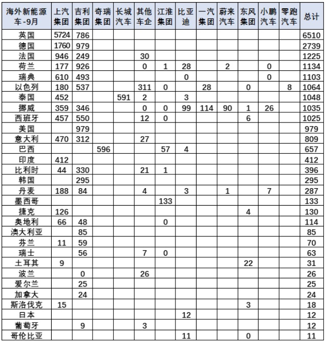 新能源车方面,从海外数据印证海关出口数据,中国新能源汽车出口表现较强,自主表现很好。近期可以看到像澳大利亚、英国、墨西哥以及其他主力市场中国车企的表现也都是极其良好的态势,挪威市场上的上汽、吉利以及比亚迪等车企表现相对优秀。新势力在挪威市场也有相对较好的表现,几家新势力主要在挪威登录欧洲,在1-9月总体有几百台的规模,体现了中国车企在海外市场获得良好的突破。
