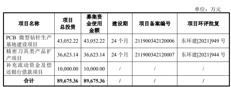 鼎泰高科在募集资金扣除发行费用后,拟用于以下列项目:
