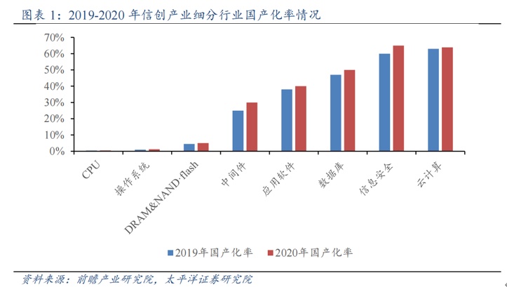 国泰君安近日发布研报指出,当前整个信创产业的重要程度被提升到新的高度。未来五年从党政信创到行业信创,从金融、运营商到教育和医疗,信创需求将全面爆发,国产软硬件渗透率将快速提升。安信证券也强调,信创开始从党政全面走向行业,或将迎来新发展机遇期。