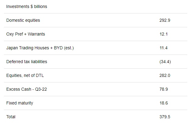 此外,在保守估计下,伯克希尔哈撒韦的承销业务是盈亏平衡的(尽管这一业务在大多数年份都产生了显著的累积收益的承保利润)。第三季度,伯克希尔哈撒韦保险承保收入为负10亿美元,低于一年前的负8亿美元。飓风伊恩于9月下旬袭击,造成超过500亿美元的损失,在保险业务盈利能力下降方面发挥了作用。然而,这被保险组合中较强劲的投资收益所抵消,因为这些收益同比增长2.5亿美元。利率上升帮助伯克希尔哈撒韦从投入国债和公司债券等固定收益投资的资金中获得更高的利息收入,这解释了为什么保险浮存金在今年第三季度(同比情况下)产生了更高的利润。