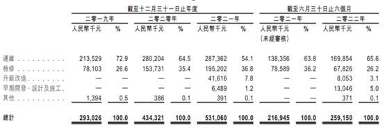 就收入结构而言,运维和检修服务是支撑该集团的主要业务,近三年对收入贡献占比直达九成,而升级改造,早期开发、设计及施工服务则是由2021年开始开展,如今虽占比较小,也呈上升趋势。