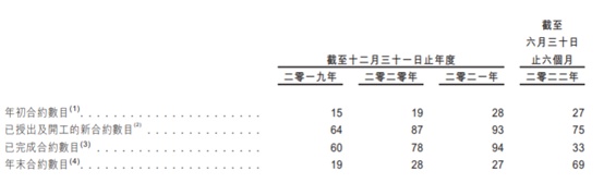 从项目来看,中国华新集团的运维和检修项目主要透过投标获得。2019-2021年及2022上半年,该公司运维服务的中标率分别为约31.3%、35.0%、34.4%及33.3%。检修服务方面,中标率则分别为约38.6%、34.4%、36.9%及43.3%。当前,中国华新集团的中标率在同行中处于较高水平,也为其带来了不少以项目为基础的合约——截至2022上半年,公司在手合约数目达到69项,初步未完成合约价值超过3亿元,有望对其后续的业绩提振形成支撑。