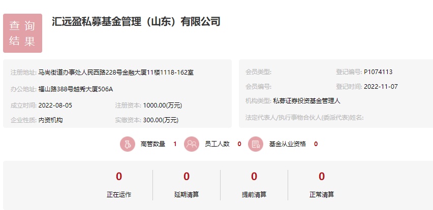 智通财经APP获悉,近日,中基协公布了最新一批完成备案的私募名单,显示一家名为汇远盈私募基金管理(山东)有限公司的私募基金管理人在11月7日备案成功。中基协信息显示,该机构成立于今年8月5日,注册资本1000万元,注册地址位于山东省淄博市、办公地址则在上海市浦东新区。在该基金的高管名单中,出现了明星基金经理杜振业的名字。杜振业管理的长安鑫益增强混合型基金是2018年的年度混合基金冠军,其管理的另一只基金长安裕腾C份额也在2019年实现9个月内规模增长超过1000倍。