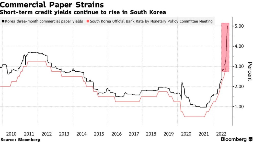 一个触发因素是9月下旬Legoland Korea theme park开发商发行的项目融资资产支持商业票据出现违约。自那以来,商业票据收益率持续上升,达到全球金融危机以来最高水平。