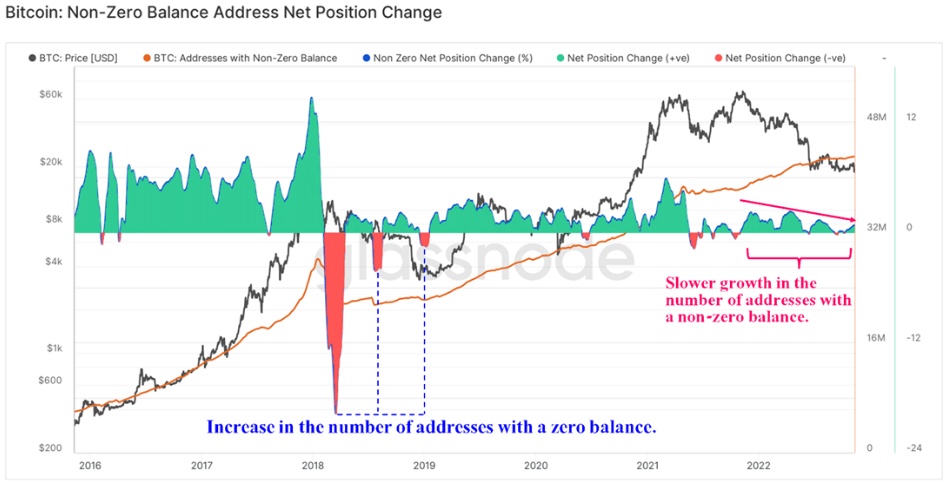新加密钱包开放放缓的逻辑结果是,非零地址数量增长放缓,因为大多数投资者继续将比特币兑换成法定货币,并将其再投资于风险更低的金融资产。在2018年前三季度也可以观察到类似的情况,当时,比特币价格在大幅下跌后,在几个月的时间里保持在3200-4000美元的狭窄价格区间,而标普500和纳斯达克100 则继续上行。