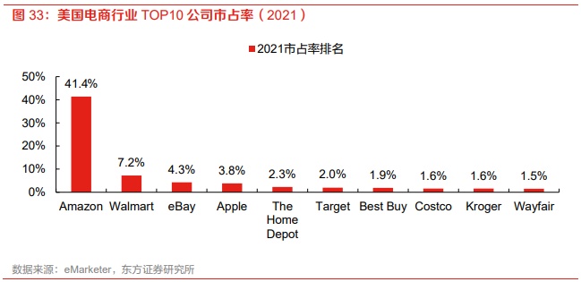 透过招股书,不难发现一个颇有意味的现象是,近年来子不语集团的收入结构发生了变化。公司重点发展亚马逊上的业务,从长远的商业战略考量显然是明智之举。一方面,众所周知海外最大的市场美国的电商环境有着典型的弱中心化特征,2021年,美国电商CR5、CR10分别为54.1%、60.4%,其中亚马逊以41.4%的份额在美国电商零售市占率排名第一,而排名第二的沃尔玛市占率仅为7.2%。基于此,对于中国品牌商而言,若想在以美国为首的海外市场快速打开局面,亚马逊自然是最佳选择。