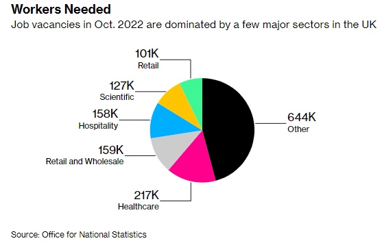 根据英国国家统计局的数据,低技能或体力劳动也被证明很难找到,卫生和社会工作部门有21.7万个职位空缺,是所有行业中最多的,占英国总职位空缺的六分之一以上。包括餐厅和酒店在内的酒店业是受影响第二严重的行业之一,有15.8万个空缺职位。