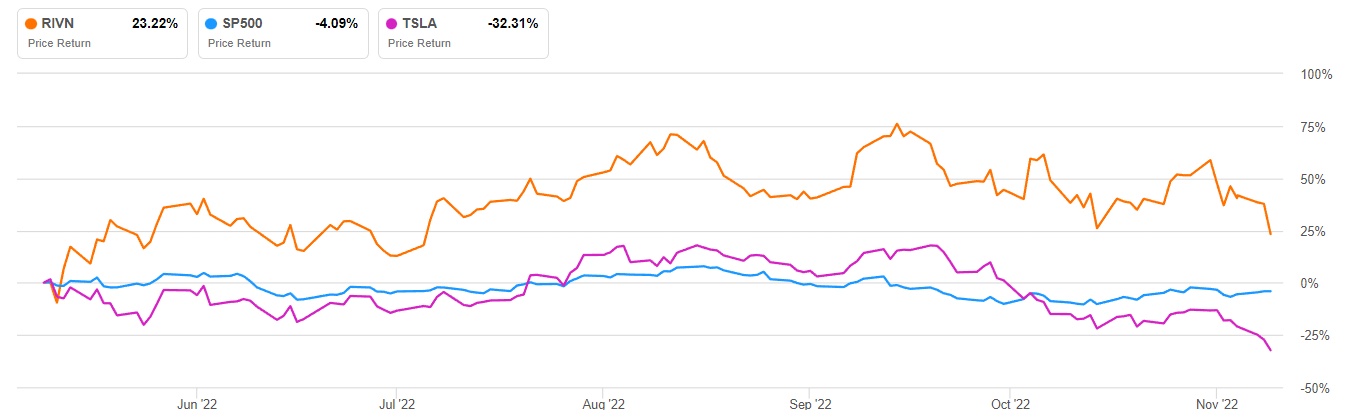 Rivian的最新预订量也给人留下了深刻的印象,预订量从9.8万辆增加到11.4万辆。尽管供应链出现瓶颈,但产量仍在持续增长,第三季度的产量约为7400辆,上季度则约为4400辆,同比增幅则达到67%。