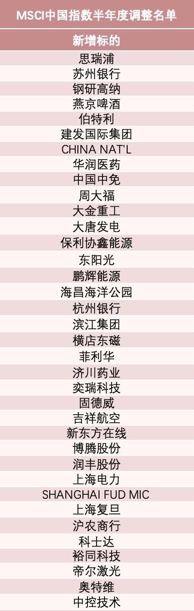 4、MSCI半年度调整出炉,中国中免等36只中国股票被纳入