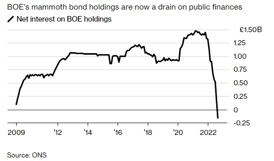 英国央行持有债券的收入相对于财政部是隔离的,并从今年开始转盈为亏。